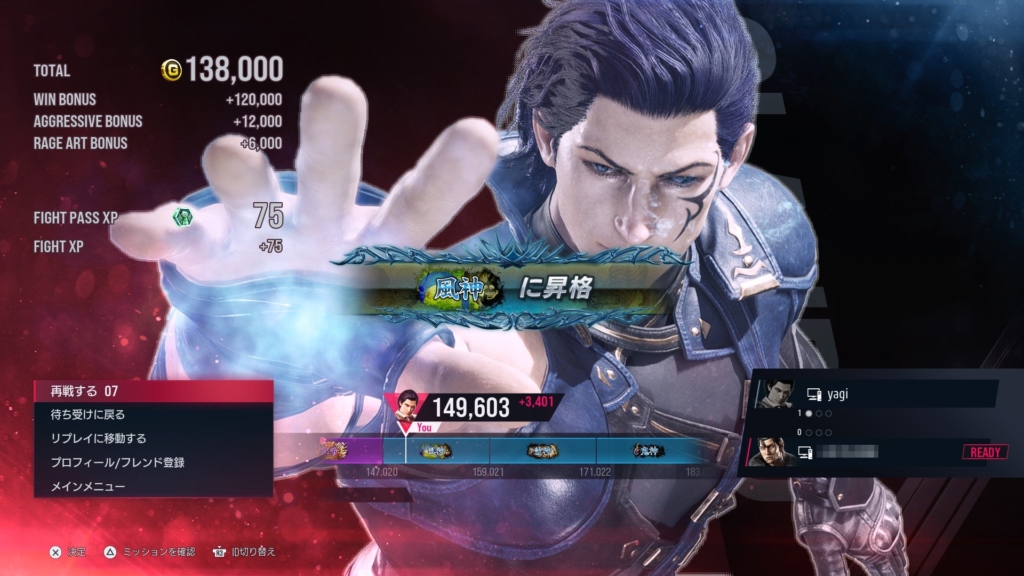 帝段で一応戦えてるし風神もうっすら見えてきたけど、勝敗が気になって遊ぶのがしんどくなってきた。